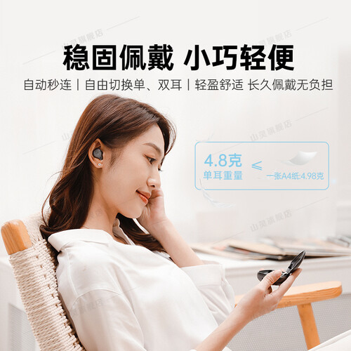 外形采用入耳式设计,佩戴舒适且流汗不易滑落,是运动时的好选择。配置灵敏触控面板,操作简单方便,支持自动连接。
