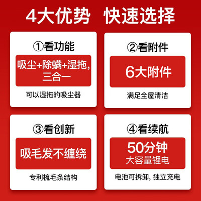 拥有吸尘湿拖除螨三合一的功能,有效提升清洁效率。湿拖组件设计卡扣式功能,支持一键拆卸,有利于提升操作灵活性。