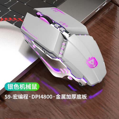 具有宏编程功能,拥有4800DPI,反应灵敏快捷。采用四色呼吸灯设计,背光效果好,气氛更浓厚。
