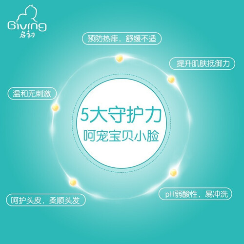 蕴含金银花蕾、胎菊、青蒿嫩叶三重初芽清萃,有助预防热痱,给宝宝自然呵护。同时添加维他命元原B5,清爽呵护宝宝头皮。