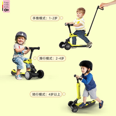集合了骑滑推三合一功能的滑板车,无需工具轻松转换,多段调节,适合不同儿童身高。