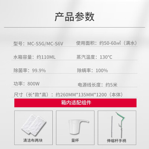 采用130°C高温蒸汽,纯物理除菌除螨,无化学残留。搭配吸水除污科技强效拖布,轻松去除多种顽固污垢。