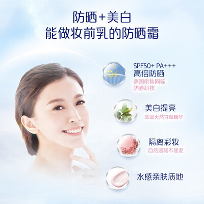 内含甘草植物提取物,能够有效滋养嫩滑皮肤,涂抹后肌肤水分值增加。全新成膜技术,能够为肌肤展开防护膜,让防晒不易脱落。