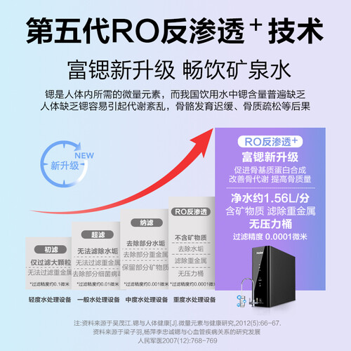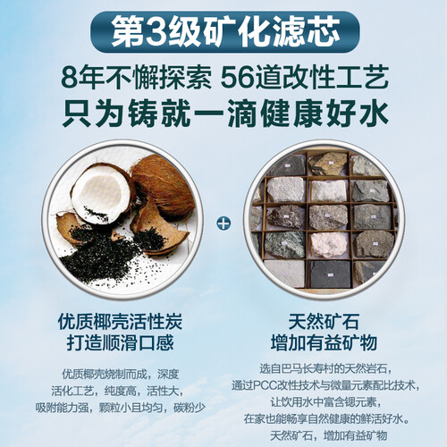 采用了全新的富锶矿泉水技术,能够有效增加水中的锶含量,水质更加健康。采用了长效阻垢材料,减少结垢,寿命长。