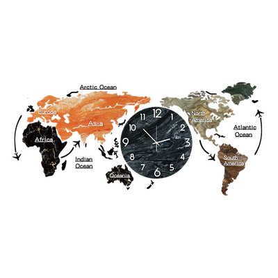 整幅字画由世界地图组成,各大陆板块线,对于世界的板块有更清晰的认知。还有大胆的色调,让造型更精致。
