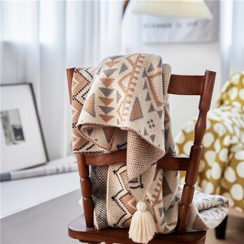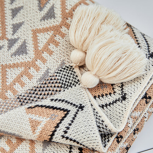 波西米亚风格,经典大气的几何花纹,加上流苏点缀,韵味十足,提升外观美感。腈纶材质,具有较强的韧性和耐磨性。