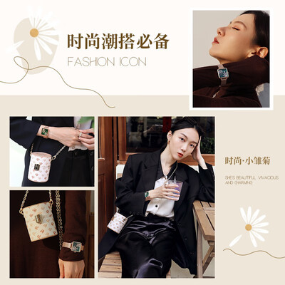 甄选孔雀绿方盘元素,为腕部增添时尚色彩,使装扮更显潮流。结合小雏菊元素,女性挚爱,送给女友促进感情。