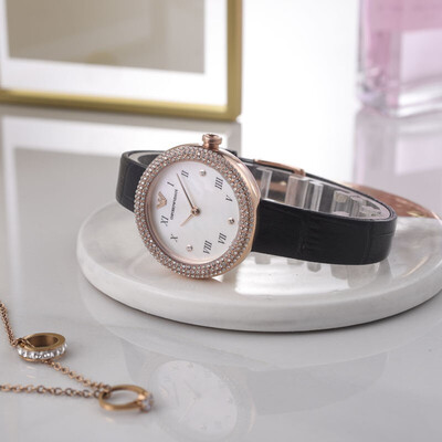 阿玛尼银色贝母盘手表