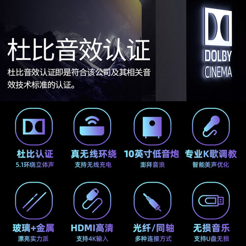 具有10英寸低音炮,低音饱满沉稳有力,爆炸感更具冲击力。采用玻璃金属相结合材质,清洁简单,结实耐用。