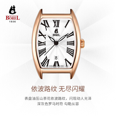 充满复古格调的酒桶型表壳,线条感柔和,展现男士睿智儒雅的一面。搭配鳄鱼纹纹理的皮质表带,更显轻奢的都市气息。