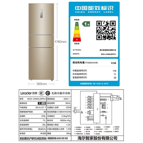 统帅 218升三门节能冰箱