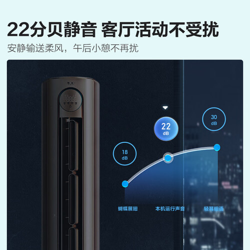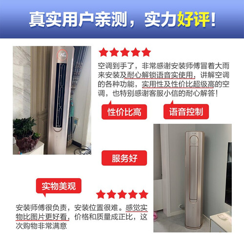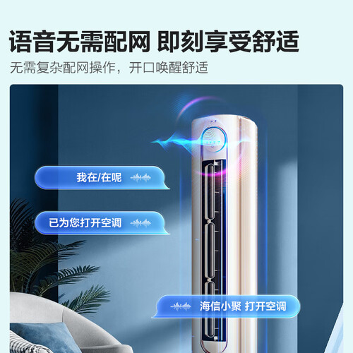 采用语音智控系统,使用无需联网,可以进行语音指令调控温度,轻松操作。采用创新导风板设计,可以进行三环立体导流出风。