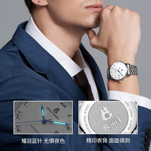 钢带戴着很有感觉,40mm表盘透亮,指针细致。机械表自动上弦,走时准确,带有日历显示,很直观。