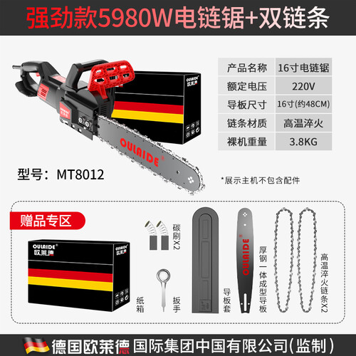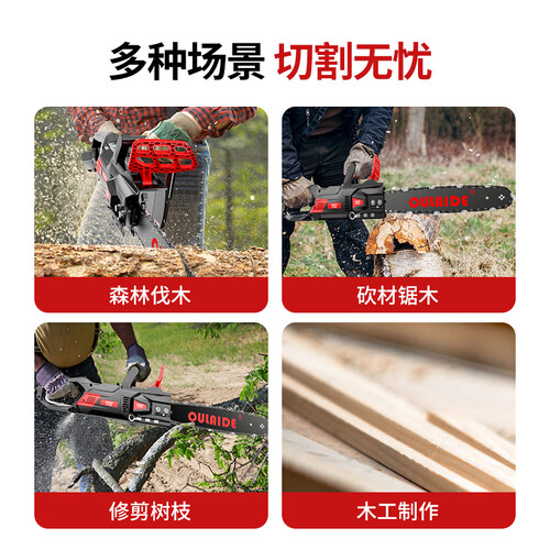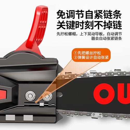 配备加厚加宽挡板,可抵挡飞溅的木屑,保护安全。搭载免调节链条系统,无需借助额外工具调节,更便于使用。