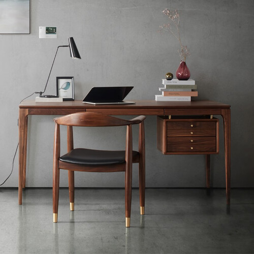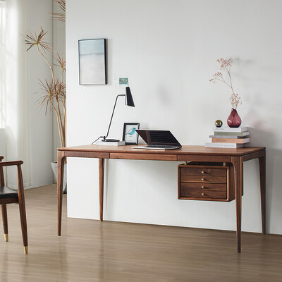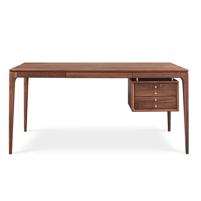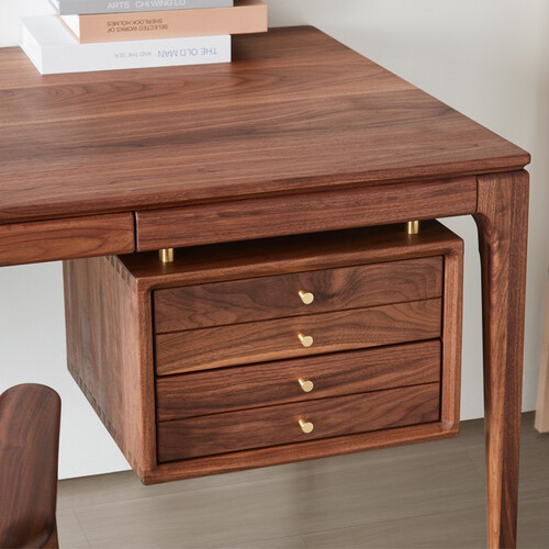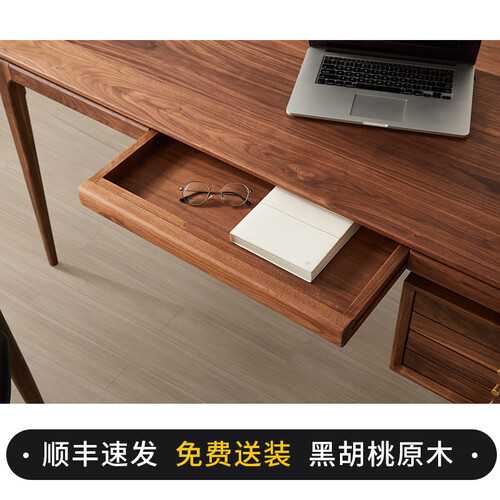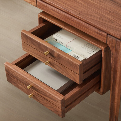 框架采用FAS特级黑胡桃原木,坚硬牢固耐腐蚀,木质结构均匀,手感细腻温润。大抽屉两层设计,实木滑轨,滑动顺畅。