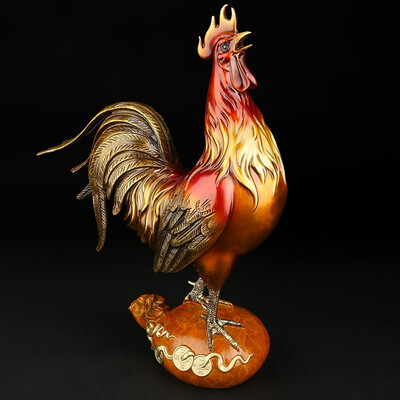金鸡报晓造型,激励指引人准时守信拼搏向上,给人美好祝福。波浪尾羽线条细节清晰栩栩如生,具有很高的观赏价值。