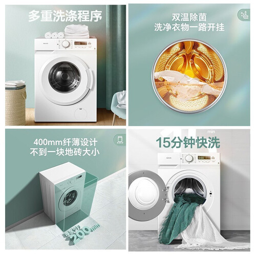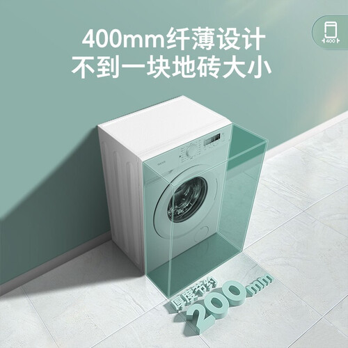 采用400mm浅薄机身设计,节省占地面积,小户型也能轻松使用。含有15分钟快洗模式,衣物随换随洗,无需过多等待。