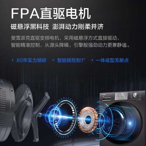 特设智能烘干,精研空气动力学原理,均匀有效传输蒸汽,,烘后衣物蓬松柔软。更有FPA直驱电机,澎湃动力刚柔并济更兼静谧。