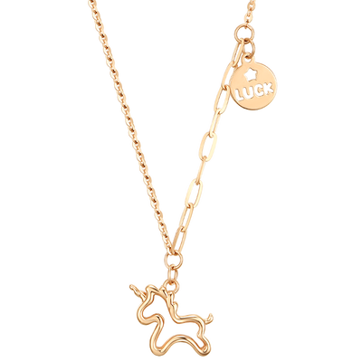 精心设计的独角兽吊坠,萌趣可爱,轻松俘获你的心。项链上还点缀着一个字母圆牌,增添设计感和潮流感。