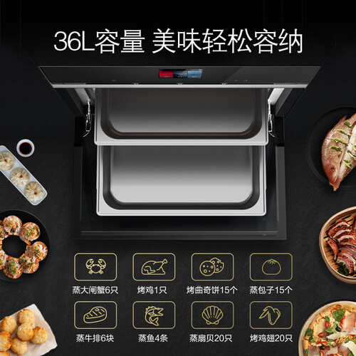 这是一款多功能微蒸烤箱,一机多用性价比高,节省厨房空间同时降低使用成本。黑晶玻璃面板,美观易清洁,彰显家居格调。