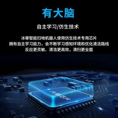 采用仿生技术芯片,可根据不同区域制定不同清洁模式,设计人性化。支持连接6大智能音箱,只需说话即可轻松控制扫地机器人。