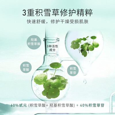 含有三重积雪草成分,能够缓解肌肤敏感,改善面部泛红情况。深层补水,快速解决因缺水导致的干痒、刺痛等问题。