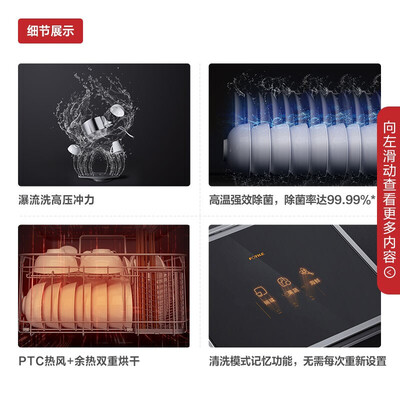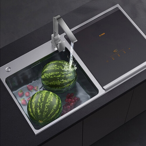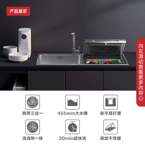 水槽、洗碗机、果蔬清洗机三合一,功能多样;配备3段高效清洗技术,自由变换,一洗即净。