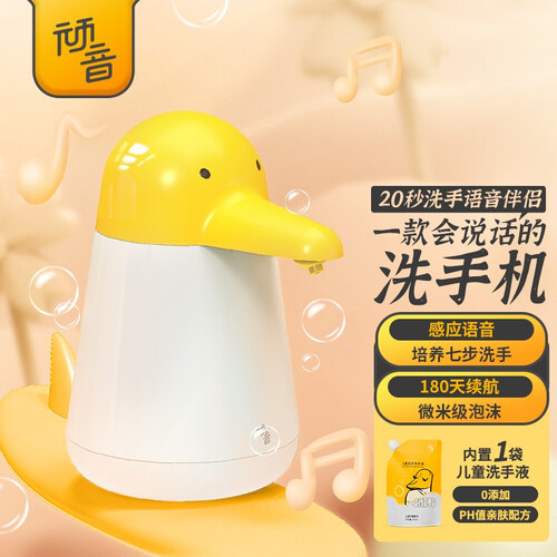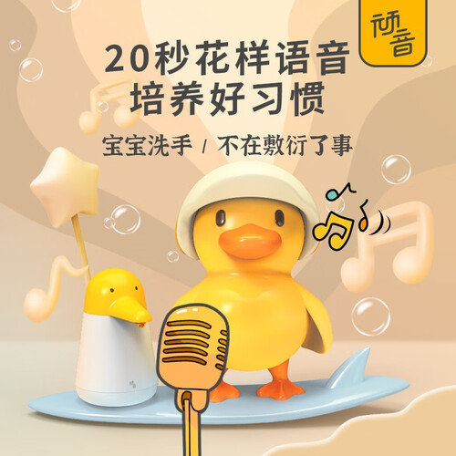搭载红外感应技术,自动出泡免触碰,防止二次污染现象。采用小顽鸭外观设计,萌趣可爱,宝贝洗手配合不抵触。