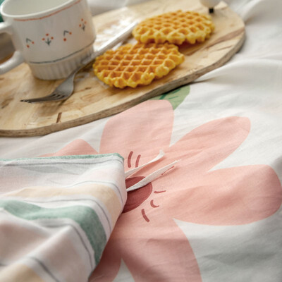 妆淡初夏主题被套,图案精致,色彩丰富,令人眼前一亮。结合全棉材质,吸湿透气,整夜舒适不闷热。