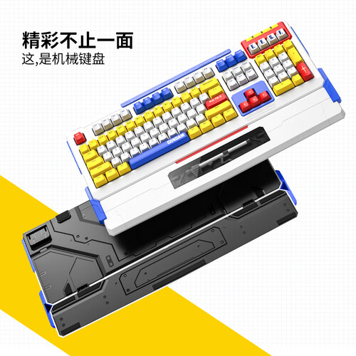 键盘自带有1.5米长的连接线,可以很方便的连接在电脑上使用。特别设计有专属的手托,能减轻操作时的负担。