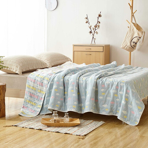 素雅的蓝色搭配上缤纷的云朵印花,打造安静格调的居住环境。选取六层纱布进行精工细作,夏季使用吸汗排气没有闷热感。