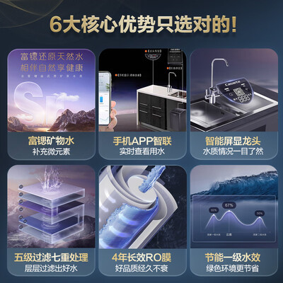 采用长效反渗透膜滤芯,使用寿命长达4年,有效为你节约换芯成本。经过七重水处理,层层过滤水中杂质,带来更洁净更健康水源。