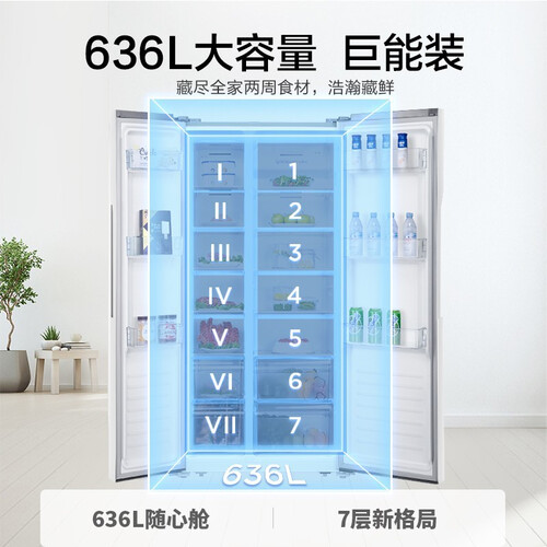 -25℃深冷锁鲜,能够快速穿过冰晶生成带,牢锁食材鲜营养。636升升大容量设计,能容纳大量的食材,满足大家庭储鲜需求。