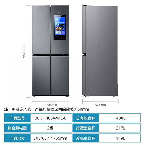 搭配触控大屏,外观时尚,操作简单,让乐趣充满厨房;408L大容量,可分区存储,满足整个家庭的生活需求。