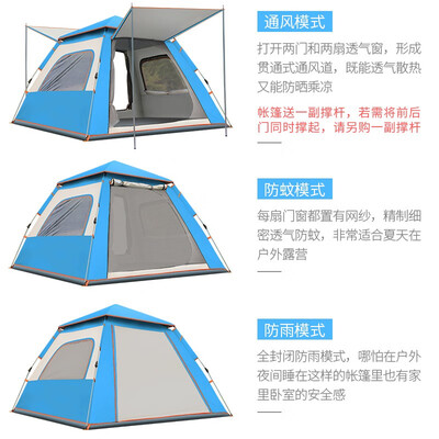 采用弹簧液压支架,可快速开启,自动撑开成型。配备两门两窗的结构,观景效果好,同时提高透气性。