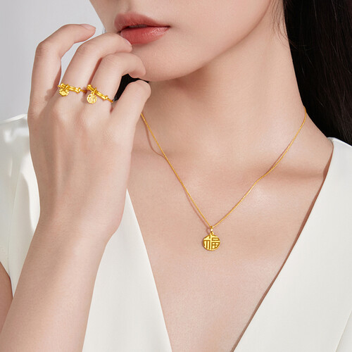 万字福牌吊坠,装点你的脖颈。简约大方的款式,采用AB双面设计,正面福字反面万字,寓意福运常伴,非常适合用来送礼,表达诚挚心意。
