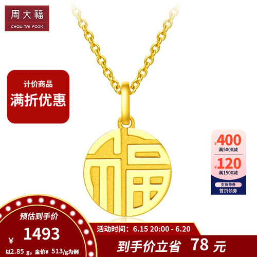 周大福 万字福牌吊坠