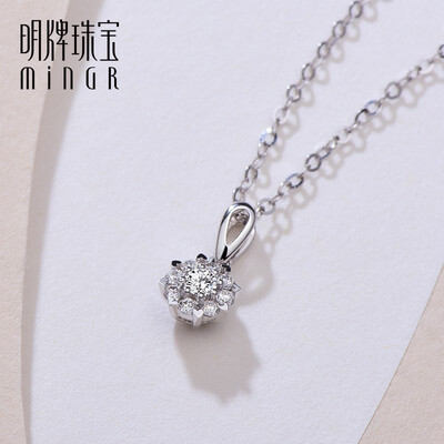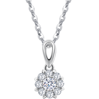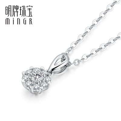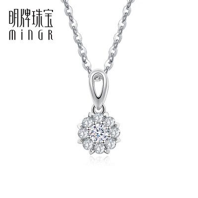 8颗钻石围绕1颗主钻,造型近似捧花,光芒璀璨聚焦美好。心形爪镶既好看又牢固,镂空底托可以让光线进入,而且更加轻盈。