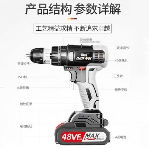电钻可以进行一键调速的设计,随心切换正反转,操作不费力。同时配备了双电池,能够让续航的时间更加持久。
