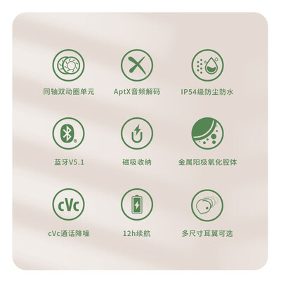 耳机支持aptX高清解码,还原丰富的声音细节,享受纯净好声音。更有同轴双圈驱动单元,感受音乐的原汁原味。