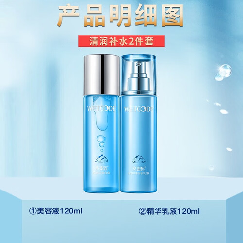肌肤时刻遭受外界侵袭,补水保湿是护肤当务之急,水密码保湿补水水乳组合运用补水加锁水双重配方,为你打造清透水润肌肤。