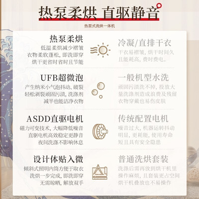采用冷水洗涤技术,保护衣服不易褪色,多次洗涤也能亮丽如新;热泵式干衣系统,烘干速度快,衣服更加平整。