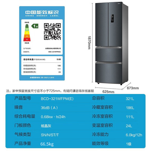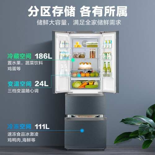 符合一级能效,变频节能,耗电量少,省钱又环保。装有铂金净味装置,有效去除内部异味,存储空间健康又清新。