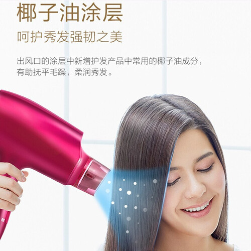 含有椰子油涂层成分,提升保湿效果,不易带走发丝水分。配置离子感应板,功能性强,保持秀发湿润细腻。