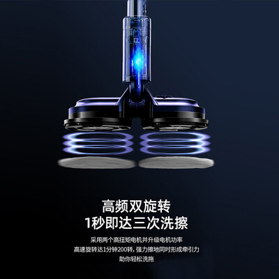 内置两个高扭矩电机,质量上乘,稳定运行,帮助地面还原洁净状态。机器手柄长度可自由调节,满足不同身高使用。