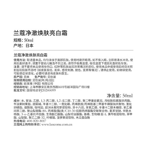 蕴含5大美白成分,能够均匀肤色,美白提亮,使肌肤更加白皙有光泽。采用高分子乳化技术,分子更小更好吸收,带来靓丽美肌。