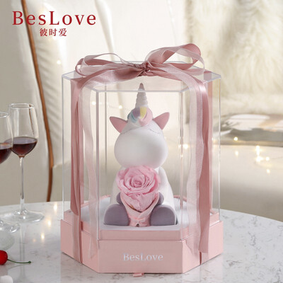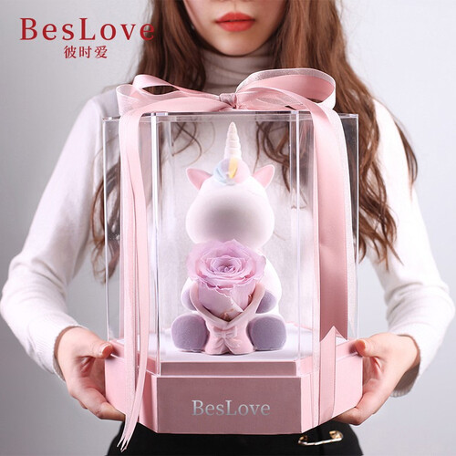 原创手绘设计,精心打造唯美的独角兽造型,整体充满可爱气息,送女友十分讨喜。手工雕琢,花朵造型很逼真。