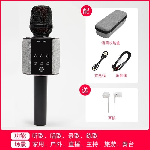 机身曲线符合人体工学设计,实现一手轻松掌握,享受家庭唱歌时光。内置心型指向,灵敏拾音,播放天籁歌声。