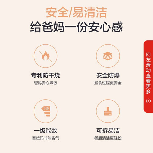 双灶5.0Kw大火力,食材爆炒风味诱人,助力展现厨艺。防干烧设计,为你的小粗心买单。一级能效燃烧充分,有效节省能耗。