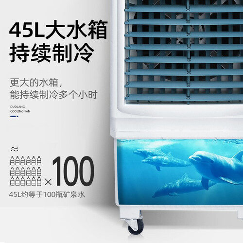 采用双重过滤净化,精密防尘网,过滤微尘,送出新鲜自然风。搭配45L水箱,能持续制冷多个小时,避免频繁加水,节能省心。